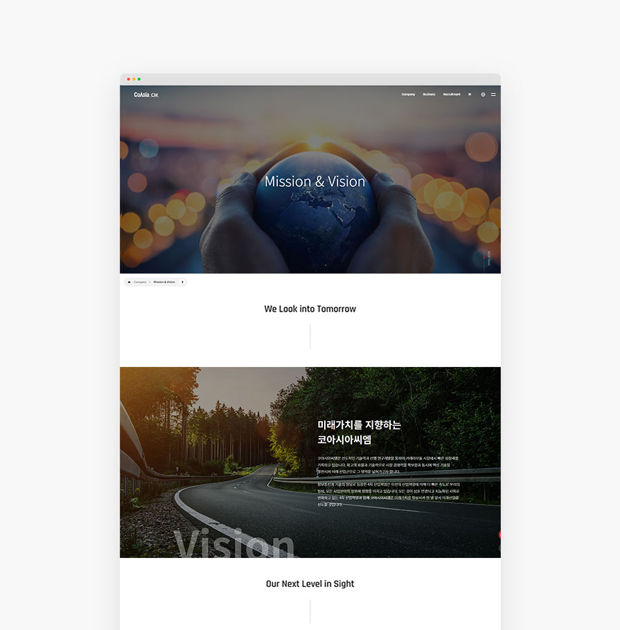 기술혁신과 인재양성을 통하여 Total Image Solution 기업으로 도약하는 회사의 아이덴티티를 확고하게 나탈 수 있는 미래지향적인 이미지와 로고 속 A를 형상화한 효과를 사용해서 제작했습니다.